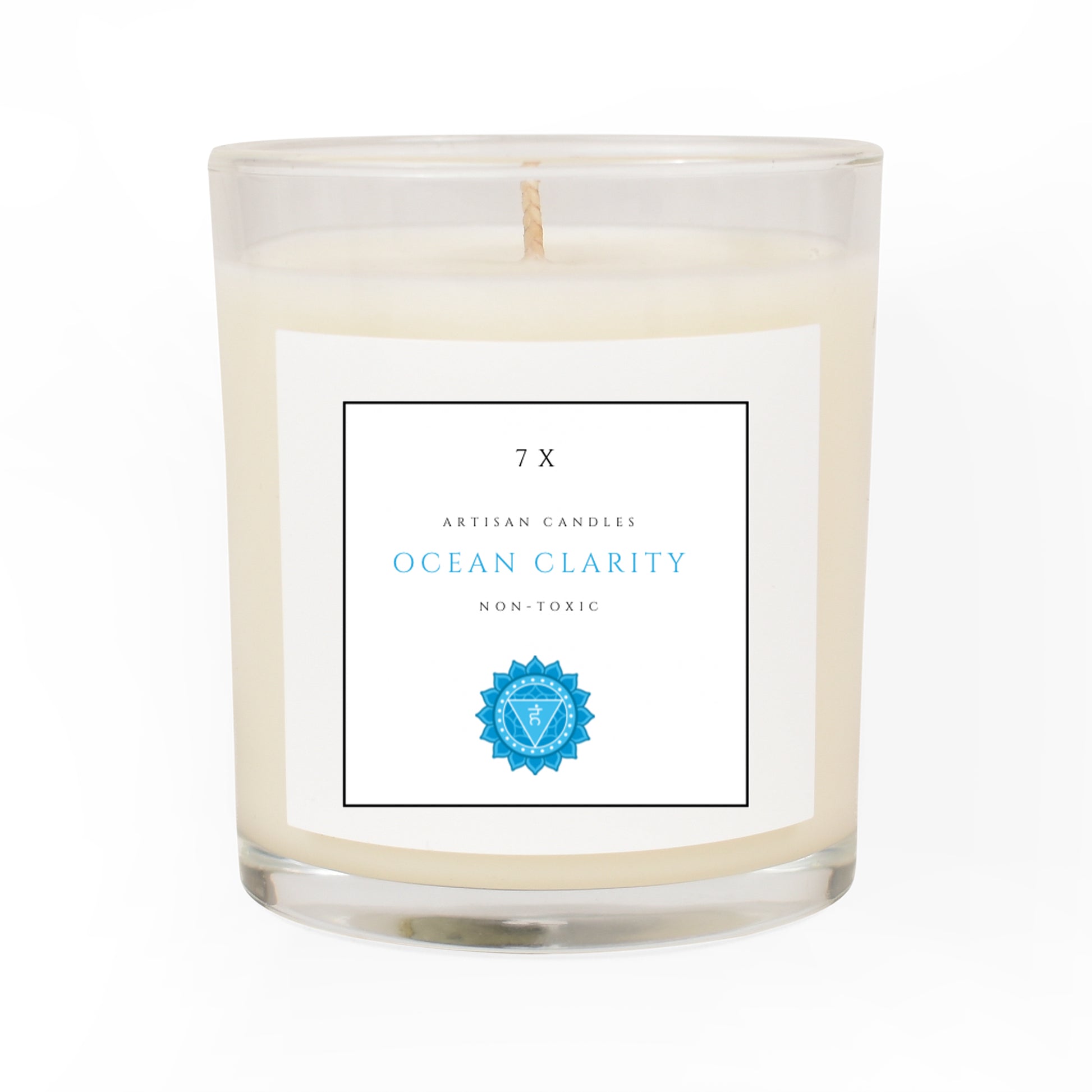 Ocean Clarity is a soothing, soul-centering candle created to support the Throat Chakra (Vishuddha) — the energy center of communication, authenticity, self-expression, and inner peace. Inspired by the cleansing, limitless presence of the ocean, this candle invites calm confidence and clear communication into your space and spirit.